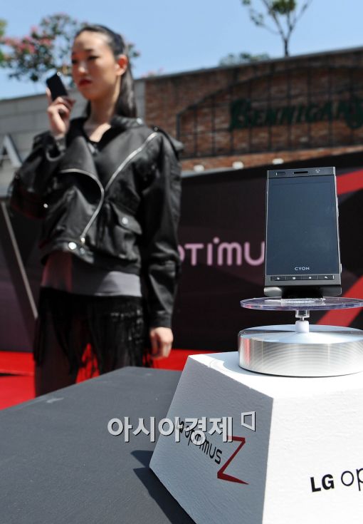 [아시아경제 이재문 기자]LG전자가 17일 서울 삼성동 코엑스 밀레니엄광장에서 절제된 세련미를 갖춘 스타일과 최고 사양의 스마트폰 기술을 집약한 ‘옵티머스Z'출시를 기념해 이색 패션쇼를 열고 있다.옵티머스Z는 11.05mm의 얇은 두께, 강렬한 직선의 날렵하면서도 깔끔한 디자인의 제트스타일을 구현, 기존 스마트폰과의 디자인을 차별화한 프리미엄 스마트폰이다.이재문 기자 moon@<ⓒ세계를 보는 창 경제를 보는 눈, 아시아경제(www.asiae.co.kr) 무단전재 배포금지>
