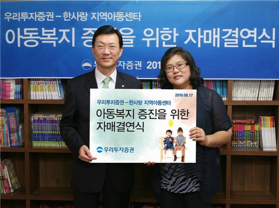 [아시아경제 전필수 기자]우리투자증권이 나눔경영을 실천하기 위한 일환으로 17일 서울 광진구 군자동 소재 ‘한사랑 지역아동센터’와 자매결연을 맺고 저소득층 청소년 및 아동 지원에 나섰다.한사랑 지역아동센터(서울 광진구 군자동 194-10 소재)는 지역 내 저소득층 청소년 및 아동의 학습, 급식 및 진로상담을 영위하는 사설복지기관으로, 현재 100여명의 청소년 및 아동을 대상으로 활동하고 있다.이번 협정은 우리투자증권과 동 센터간의 1:1 자매결연 형식으로 이루어지며, 우리투자증권 홀세일(Wholesale) 사업부를 통해 센터 아동들을 위한 후원은 지속적으로 실시될 예정이다.첫 번째 행사로 '행복한 여름캠프'가 19일부터 20일까지 1박2일간 강원도 춘천시 남산면 원코리아 기업연수단에서 열릴 예정이다. 참가 어린이들은 다양한 프로그램을 통해 즐겁고 소중한 체험의 기회를 갖게 될 예정이며, 우리투자증권 임직원 10여명이 행사 진행요원으로 참가한다. 우리투자증권 홍보실 관계자는 “우리투자증권은 소외계층 지원을 통한 나눔 경영의 실천으로 사회공헌에 항상 앞장서 왔으며, 일회성에 그치지 않고 보다 적극적인 사회공헌 프로그램 개발로 사회와 더불어 성장하는 기업의 역할에 충실할 것”이라고 말했다.전필수 기자 philsu@<ⓒ세계를 보는 창 경제를 보는 눈, 아시아경제(www.asiae.co.kr) 무단전재 배포금지>