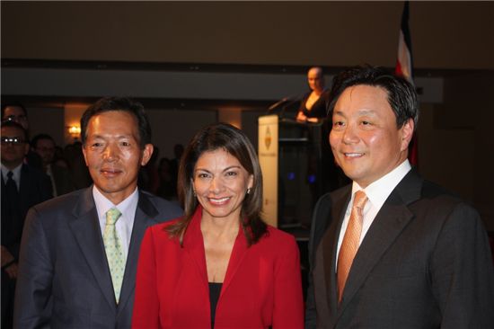17일 삼성SDS가 코스타리카 전자조달시스템 오픈식을 가졌다. 왼쪽부터 권태면 주 코스타리카 대사, 라우라 친치야 코스타리카 대통령, 삼성SDS 고순동 부사장
