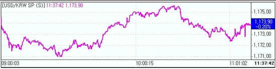 [아시아경제 정선영 기자]원·달러 환율이 1170원대로 하락한 후 좁은 등락을 이어가고 있다. 오전부터 역외 매도가 강하게 유입됐으나 1171원선에서 유로 하락을 의식한 숏커버가 유입되면서 환율은 추가 하락이 제한됐다. 18일 오전 11시34분 현재 원·달러 환율은 전일대비 2.4원 내린 1173.8원에 거래되고 있다. 이날 환율은 1174.5원에 하락 개장한 후 1171.0원까지 밀렸다가 숏커버로 1175.6원까지 올랐다. 한 시중은행 외환딜러는 "시장이 전반적으로 숏 쪽으로 기울어 있어 1171원대에서 숏커버가 나왔다"며 "1175원대부터 네고물량이 지속적으로 유입됐으나 유로가 더 빠질 경우 숏커버가 심화될 가능성도 있다"고 말했다. 그는 "아래쪽으로 더 밀릴 가능성이 있지만 최근 원화와 유로화의 커플링이 심화되고 있는 만큼 위로 1180원까지는 아직 열어둬야 할 듯하다"고 말했다. 오전 11시36분 현재 유로달러 환율은 1.2848달러로 하락하고 있다. 전일 스페인과 아일랜드의 국채 입찰이 순조롭게 마무리되면서 유로달러가 올랐으나 상승폭을 추가로 확대시키지는 못했다. 정선영 기자 sigumi@<ⓒ세계를 보는 창 경제를 보는 눈, 아시아경제(www.asiae.co.kr) 무단전재 배포금지>정선영 기자 sigumi@<ⓒ아시아 대표 석간 '아시아경제' (www.newsva.co.kr) 무단전재 배포금지>