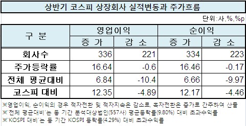 [아시아경제 임선태 기자]가치 투자의 귀재 워런버핏과 국내 증시의 공통점은 "실적은 거짓말을 하지 않는다"는 원칙을 몸소 실천하고 있다는 점이다. 버핏에게 4년간 1조5000억원이라는 차익을 안겨준 포스코는 초기 투자 당시 5년 평균 자기자본이익률(ROE)이 16.8% 수준에 이르렀고 당시 버핏은 포스코의 주가 상승을 미리 예견, 추가 매입에 나섰다. 지난 상반기 높은 영업이익을 기록한 국내 상장회사들일수록 더 탄력적인 주가 상승세를 시현한 점을 감안할 때 '실적은 불변의 진리'라는 점이 또 한번 증명된 셈이다. 19일 한국거래소(KRX)에 따르면 지난해 동기 대비 올 상반기 영업이익이 증가한 336개사의 주가는 16.64% 상승, 시장대비 12.35%포인트의 초과수익률을 기록했다. 순이익 증가사 334개사의 주가도 시장대비 12.17%포인트 높은 수익률을 기록, 두 지표에 따른 주가 초과수익률 차이는 불과 0.18%포인트로 집계됐다. 실적 악화에 따른 주가 흐름도 영업이익, 순이익과 밀접한 연관성을 보였다. 전년 동기 대비 영업이익이 감소한 221개사의 주가는 4.89%포인트 초과 하락률을 경험했고 순이익이 감소한 223개사의 주가는 시장대비 4.46%포인트 초과 하락을 경험했기 때문이다. 특히 올 상반기에 전년 동기 대비 3909%, 1615%, 1611% 수준의 영업이익 증가율을 보인 신성ENG 카프로 대한방직의 경우 해당 기간 시장대비 76.73%포인트, 55.71%포인트, 26.51%포인트 초과 수익률을 기록했다. 순이익 증가율 상위 법인으로 분류된 혜인 휴스틸 유성기업 한미반도체 캠브리지코오롱 BNG스틸 삼양제넥스 노루페인트는 올 상반기 시장대비 최대 30%에 육박하는 초과 수익률을 시현, 실적과 주가의 연동성을 증명했다. 증시 전문가들도 투자유망주를 발굴하는데 있어 실적의 중요성을 강조했다. 양해정 동부증권 애널리스트는 "마켓타이밍을 위한 정확한 변곡점을 찾기 어려울수록 종목중심의 접근이 유효하다"며 "이 같은 상황일수록 실적호전주가 대안"이라고 언급했다. 이어 "최근 성과가 좋은 고(高) ROE 종목 중에서 ROE 분해를 통해 추가적으로 ROE 상승 가능성이 높은 종목군에 관심을 가질 필요가 있다"고 전했다. 버핏 또한 주당순이익(EPS) 대신 ROE를 투자 척도로 삼아 15%를 넘긴 기업에 집중적으로 투자하는 것으로 유명하다.김중원 HMC투자증권 애널리스트는 3·4분기 투자 전략으로 영업이익 상향 종목들을 추천했다. 그는 "실적시즌 동안 매출액 및 영업이익 전망이 상향 조정된 종목이 시장대비 안정적인 초과수익을 기록할 확률이 높다"며 어닝모멘텀을 강조했다. 지난달 실적시즌에서 3분기 매출액과 영업이익 전망이 모두 개선된 종목으로는 우리투자증권 서울반도체 호텔신라 삼성SDI 등이 꼽혔다. 한편 올 상반기 주가등락률 조사는 올 1월4일 기준가에서 지난 17일 보통주 수정주가 기준으로 진행됐다. 코스피시장 12월 결산법인 639개사 중 중 전년 동기 실적과 비교가 가능한 법인으로 결산기변경, 분할·합병, 상장폐지절차 진행, 한국채택 국제회계기준(K-IFRS) 및 신규상장 등의 사유로 주가등락률 비교가 불가능한 종목을 제외한 557사가 조사 대상으로 영업이익, 순이익의 경우 적자전환 및 적자지속은 감소로, 흑자전환은 증가로 간주해 산출됐다. 임선태 기자 neojwalker@<ⓒ세계를 보는 창 경제를 보는 눈, 아시아경제(www.asiae.co.kr) 무단전재 배포금지>