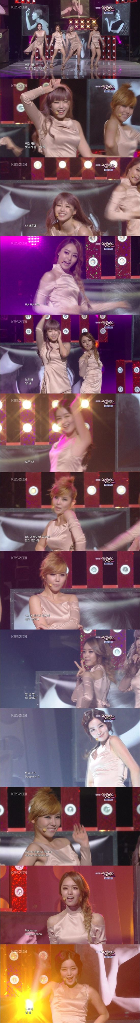 [아시아경제 최준용 기자] 4인조 인기 걸 그룹 시크릿(전효성, 송지은, 한선화, 징거)이 새롭게 변한 모습으로 화끈한 무대를 선사했다.시크릿은 20일 오후 5시 50분부터 생방송으로 진행된 KBS2 '뮤직뱅크'에 출연해 두 번째 미니음반 타이틀곡 ‘마돈나’(Madonna)를 공개했다.이날 무대에서 시크릿은 멤버들의 염색한 머리와 여성미를 강조한 화려한 의상으로 눈길을 사로잡았다. 또한 손동작과 웨이브를 이용한 안무로 한 층 성숙한 무대를 펼쳤다. 타이틀곡 ‘마돈나’는 히트작곡가 강지원-김기범이 의기투합해 완성한 곡으로, ‘마돈나와 같이 그 시대의 아이콘이 되어 당당하고 자신 있게 살자’는 메시지가 담겨 있다. 일렉트로닉 팝 댄스 장르의 곡임에도 불구하고 기계적 신스 사운드를 최대한 배제한 채 실제 연주 느낌을 살렸으며, 국내 정상급 브라스 밴드 TST 팀이 세션으로 참여, 곡의 완성도를 한층 끌어 올렸다.한편 이날 무대에는 대국남아, 나비, 성은, 블랙리스트, JQT, 나인뮤지스, 서인국, 바비킴, 초신성, 홍진영, 장윤정, 레인보우, 환희, Homme(창민&이현), 조성모, 손담비, 이루, 세븐, DJ DOC, 시크릿, 샤이니(SHINee), 보아(BoA) 등이 참여해 멋진 무대를 꾸몄다.최준용 기자 yjchoi01@<ⓒ아시아경제 & 스투닷컴(stoo.com)이 만드는 온오프라인 연예뉴스>