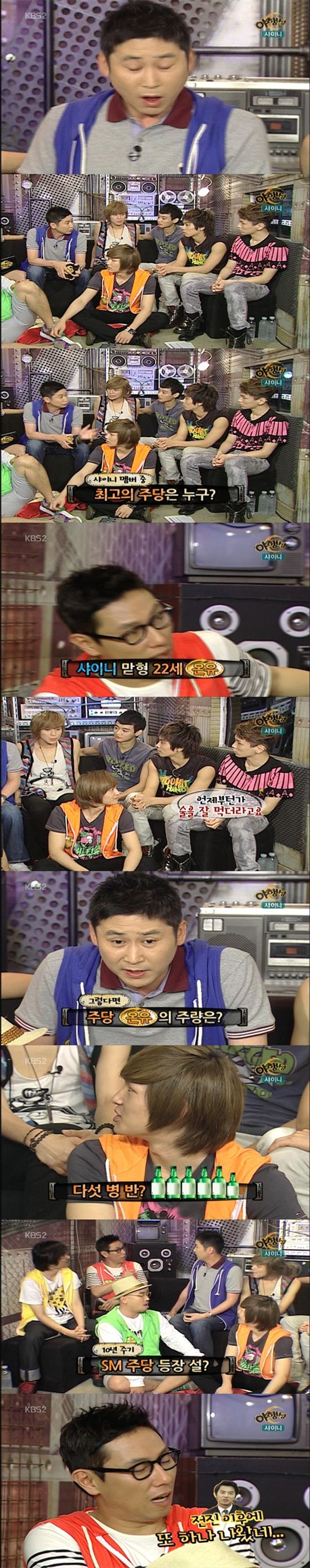 [아시아경제 최준용 기자] 샤이니 리더 온유가 멤버들 중 주당인 사실이 밝혀졌다.22일 방송된 KBS2 '야행성'에서 샤이니 멤버들은 ‘샤이니 멤버들중 제일 주당은?’이라는 질문에 이구동성으로 리더 온유를 지목했다.이날 멤버 종현은 “다들 술을 잘 마시지는 못하지만 그래도 온유 형이 나이가 있다보니 제일 잘 마신다”고 증언했다. 이어 키는 “어디서 배워왔는지는 모르겠지만 언제부턴가 술을 잘 먹기 시작했다”고 추가적으로 덧붙였다. 이어 주량은 어느정도인지 묻는 MC들에게 온유는 “제일 많이 마셔본 것이 최고로 5병반까지 마셔봤다”고 자신의 주량을 깜짝 고백해 주변을 깜짝 놀라게 했다.이에 MC 윤종신은 "전진 이후 10년 만에 나타난 SM 엔터테인먼트 주당 아이돌"이라며 너스레를 떨어 웃음을 더했다.한편 이번 주 ‘스타가 밥 먹여 드립니다’의 주인공은 돌아가신 부모님을 대신해 4남매를 키워온 맏언니. 응급실 간호사로 열심히 일하는 언니를 위해 몰래 병원 잠입에 성공한 야행성 5MC와 샤이니의 깜짝 이벤트로 감동을 자아냈다.최준용 기자 yjchoi01@<ⓒ아시아경제 & 스투닷컴(stoo.com)이 만드는 온오프라인 연예뉴스>