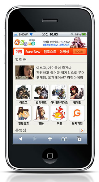 [아시아경제 김철현 기자]엠게임이 스마트폰 환경에 맞는 모바일 웹사이트를 오픈했다. 엠게임(대표 권이형)은 스마트폰을 사용하는 회원들이 언제 어디서든 게임사이트에 접속할 수 있도록 모바일 웹사이트()를 구축하고 자사의 다양한 온라인게임 정보를 제공하기로 했다고 23일 밝혔다.새롭게 구축된 엠게임 모바일 웹사이트는 최신작 아르고, 애니멀워리어즈, 발리언트를 비롯해 웹게임, 열혈강호온라인, 영웅온라인, 귀혼 등 엠게임의 대표게임 정보를 한 눈에 볼 수 있도록 구성됐다.엠게임에 따르면 모바일 웹사이트에서는 서비스하고 있는 각 게임별 소식, 자유게시판, 게임 동영상 등을 만날 수 있으며 엠게임 화보 코너를 통해 사내 문화도 엿볼 수 있다. 엠게임 포털사업본부 조인한 상무는 "최근 스마트폰 사용 인구가 증가하면서 온라인 게임 서비스를 위한 웹서비스 환경에도 변화가 필요했다"며 "모바일 웹사이트를 통해 보다 편리하게 게임 정보와 서비스를 이용할 수 있도록 사이트를 계속 업그레이드 시켜나갈 계획"이라고 설명했다. 한편 엠게임은 모바일 웹사이트를 통해 게임 정보 제공 뿐 아니라 게임 아이템 경매도 가능한 애플리케이션을 개발 중이다. 김철현 기자 kch@<ⓒ세계를 보는 창 경제를 보는 눈, 아시아경제(www.asiae.co.kr) 무단전재 배포금지>