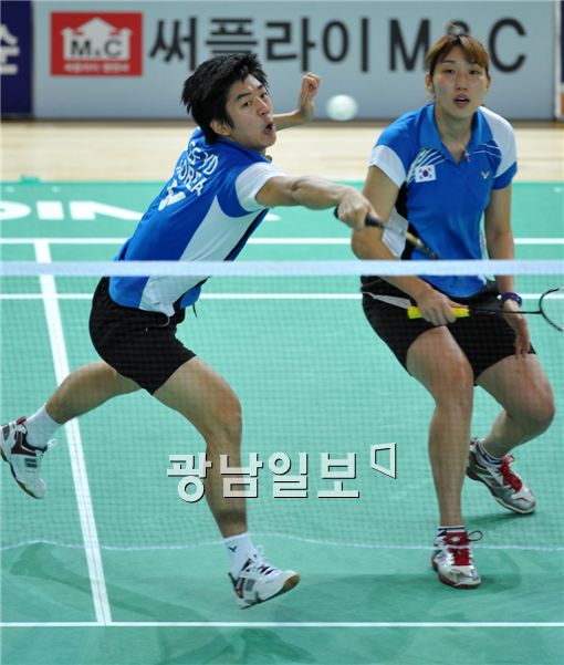 [아시아경제 이종길 기자]2008 베이징올림픽에서 금메달을 합작한 이용대, 이효정(이상 삼성전기) 듀오가 세계배드민턴선수권대회 8강 진출에 실패했다. 이용대-이효정 조는 26일(현지시간) 프랑스 파리 스타드 피에르 드 쿠베르텡 실내체육관에서 열린 세계배드민턴선수권대회 혼합 복식 16강전에서 세계랭킹 13위 대만의 리성무-젠위진 조를 맞아 0-2(17-21, 20-22)로 패했다. 1세트는 초반 접전 양상을 띠었다. 지난대회 동메달을 합작한 이용대-이효정 조는 17-13으로 앞질러 나갔지만 이후 연속 8실점을 허용하며 무너졌다. 2세트 역시 흐름은 비슷했다. 20-18로 승리를 눈앞에 뒀지만 바로 듀스를 허용한 뒤 연속 2점을 내줘 세트스코어 0-2로 고개를 숙였다.반면 고성현(김천시청)-하정은(대교눈높이) 조는 덴마크의 벽을 넘고 8강에 안착했다. 요아킴 피셰르 닐센-크리스티나 페데르센 조를 상대로 2-1(21-13, 13-21, 21-19) 승리를 거뒀다.한편 함께 기대를 모았던 유연성(수원시청)-김민정(전북은행) 조는 세계랭킹 3위의 인도네시아 노바 위디안토-릴리야나 나치르 조를 맞아 1대 2로 아깝게 패해 16강에서 탈락했다. 이종길 기자 leemean@<ⓒ아시아경제 & 스투닷컴(stoo.com)이 만드는 온오프라인 연예뉴스>