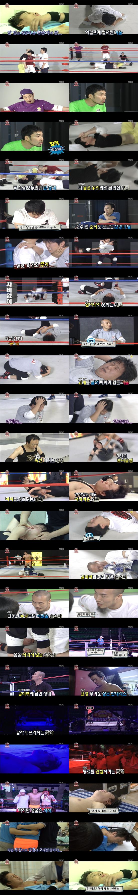 [아시아경제 최준용 기자]토요일 예능의 동시간대 최고로 군림하던 MBC '무한도전'이 시청률 경쟁에서 SBS '놀라운대회 스타킹'에 밀리는 놀라운 일이 벌어졌다. 29일 시청률 조사기관인 AGB닐슨 조사결과 지난 28일 방송된 '무한도전'은 13.5%를 기록했다. 이는 전주 21일(16.7%) 방송보다 3.2% 하락한 수치. 반면 ‘스타킹’은 15.4%로 '무한도전'을 1.9%포인트 차 앞서는 이변을 연출했다. 그러나 또다른 시청률 조사기관인 TNS코리아 미디어 집계에서는 '무한도전'이 전국 시청률 18%로 여전히 토요일 동시간대 경쟁 프로들 가운데 선두를 달렸고 '스타킹'이 13.9%,로 그 뒤를 추격하는 양상이었다. 어느 쪽 결과로건 토요일 예능 프로그램의 절대강자로 군림하던 ‘무한도전’으로서는 당혹스런 결과이다. 한때 최고 시청률 30%를 돌파하며 타 경쟁프로그램과 비교 우위를 내달렸던 것과 비교해 볼때 참담한 결과일 수밖에 없다.28일 방송에서 무한도전 멤버들은 또한 최종 경기를 앞두고 녹화 날 이외에도 멤버들끼리 조를 짜서 연습하며 스케줄을 따로 빼는 등 막바지 프로레슬링 경기 준비에 구슬땀을 흘렸다. 멤버들은 연습과정에서 크고 작은 부상을 당하며 안타까움을 자아냈다. 특히 정형돈은 가벼운 뇌진탕을 일으키며 안타까움을 자아냈다. 정준하의 초크슬램에 머리 뒤쪽에 강한 충격을 받은 것. 정형돈은 멤버들의 걱정에 괜찮다며 안심을 시켰지만 이내 누적된 충격으로 병원 신세를 졌다. 또한 이외에도 어께 부상의 박명수. 갈비뼈 부상의 손스타 등 무한도전 멤버들은 크고 작은 부상에도 투혼을 불사르며 끝까지 포기하지 않는 정신력을 보여줬다. 경기 당일 링 위에서 쓰러진 정준하는 한사코 병원행을 거부하고 끝까지 경기를 하겠다는 의지로 가슴을 뭉쿨하게 했다. 이날 무한도전 멤버들은 프로레슬러 라는 뚜렷한 목표를 이루기 위해 혼신의 힘을 다하며 웃음과 감동을 선사했다.한편 동시간대 방송된 SBS '스타킹'은 15.4%의 시청률을, KBS2 '천하무적토요일'은 5.9%의 시청률을 각각 기록했다. 최준용 기자 yjchoi01@<ⓒ아시아경제 & 스투닷컴(stoo.com)이 만드는 온오프라인 연예뉴스>