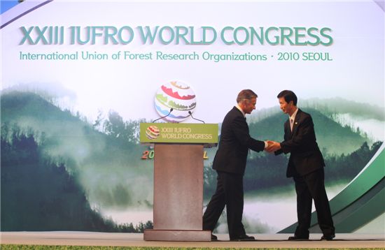 폐막식에선 차기(24차) IUFRO총회는 2014년 미국 솔트레이크시티에서 열기로 결정했다. 또 신임 IUFRO 회장으론 닐스 엘러스 코흐(Niels Elers Koch) 현 IUFRO 부회장을 뽑았다. 닐스 엘러스 코흐 신임회장은 덴마크 출신으로 덴마크 산림경관(Forest & Landscape, Denmark) 회장 겸 덴마크 코펜하겐 대학교수다. 이돈구 IUFRO 회장은 이번 대회를 끝으로 5년의 임기를 마쳤다.제23차 세계산림과학대회 서울총회는 ‘사회와 환경, 그리고 지구의 미래를 위한 산림의 역할’ 주제로 노벨경제학상 수상자 오스트롬(Elinor Ostrom) 인디애나대 교수 등 세계적 석학들이 참석한 가운데 5일간 코엑스에서 열렸다. 총회에선 특히 산림의 가치를 환경·경제학적 면에서 재조명하는 2150편의 논문이 제출돼 기후변화대응과 녹색성장을 위한 산림의 역할에 관해 총회기간 내내 열띤 토론이 펼쳐졌다. 총회는 최대 인원 참석 및 최다 논문 발표 등 118년간의 세계산림과학대회 역사상 최대 규모로 펼쳐졌다.이돈구 IUFRO 회장은 “이번 총회에 다양한 연구성과가 발표, 지구촌의 눈길이 쏠렸다. 기후변화 대응과 녹색성장 뿌리인 산림에 대한 세계인의 관심을 더 높일 수 있는 계기가 된 것으로 평가한다”고 말했다.서울총회 조직위원장인 최완용 국립산림과학원장은 “대회를 통해 ‘세계 최단기 국토녹화 성공 신화’ 및 ‘저탄소 녹색성장’ 등 우리나라의 국가브랜드를 세계에 알리고 대한민국의 국격을 높이는 계기가 됐다”고 평가했다.그는 “산림과학분야의 글로벌 네트워크를 강화하게 돼 우리나라가 산림분야 국제논의 중심국으로 발돋움할 수 있는 발판을 마련했다”고 덧붙였다. 왕성상 기자 wss4044@<ⓒ세계를 보는 창 경제를 보는 눈, 아시아경제(www.asiae.co.kr) 무단전재 배포금지>