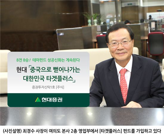 [아시아경제 이솔 기자]현대증권(대표이사 최경수)은 목표전환형 테마펀드인 ‘현대 중국으로 뻗어나가는 대한민국 타겟플러스펀드’를 출시한다고 30일 밝혔다. 모집 기간은 30일부터 다음달 3일까지이며 100억원 규모로 선착순 모집한다.이 펀드는 온라인게임ㆍ의류ㆍ화장품ㆍ핸드폰ㆍ자동차와 같은 중국 소비 대중화 및 내수시장 확대에 따른 수혜가 예상되는 국내 우량기업들이 주요 투자대상이다. 목표수익률 달성 시 주식을 전량 매도한 후 채권형펀드로 자동전환돼 운용되는 목표전환형 테마 펀드이다. 만기는 2년으로 설정되어 있으나 고객이 원하는 경우 언제든지 환매가 가능한 개방형 펀드이다. 목표수익률은 선취판매수수료와 환매수수료를 차감한 세전 실질수익률로서 펀드 설정 후 1년 이내에 15%이며 1년 이내 미달성시에는 25%로 상향 조정된다. 최철규 현대증권 영업추진본부장은 “세계 2위 경제대국인 중국시장에서 경쟁력을 보유한 국내 수출기업의 지속적 성장을 바탕으로 목표를 조기에 달성할 것”이라며 “과거 총 8종의 주식형 테마펀드를 출시하여 모두 목표수익률을 달성한 바 있으며 이번 테마펀드도 반드시 성공해 신화를 재현하겠다”라고 말했다. 운용은 현대증권의 자회사인 현대자산운용이 담당하며 가입 및 문의는 전국 139개 영업점과 고객만족센터(1588-6611)로 하면 된다.이솔 기자 pinetree19@<ⓒ세계를 보는 창 경제를 보는 눈, 아시아경제(www.asiae.co.kr) 무단전재 배포금지>