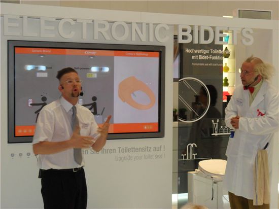 [아시아경제 박성호 기자] IFA2010에서 웅진코웨이 모델들이 비데에 대해 설명하고 있다. 유럽에서는 비데문화가 아직 형성이 안돼 있어 관람객들은 신기한 제품으로 인식할 정도다.베를린(독일)=박성호 기자 vicman1203@<ⓒ세계를 보는 창 경제를 보는 눈, 아시아경제(www.asiae.co.kr) 무단전재 배포금지>