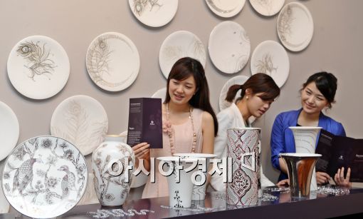 [아시아경제 이재문 기자]한국도자기가 5일 서울 롯데백화점 본점 에비뉴엘 전시장에서 프라우나의 '빛으로의 여행' 특별전에 공작새 화병과 접시, 깃털을 형상화한 각종 설치미술이 선보여 고객들의 눈길을 끌고 있다.이재문 기자 moon@<ⓒ세계를 보는 창 경제를 보는 눈, 아시아경제(www.asiae.co.kr) 무단전재 배포금지>