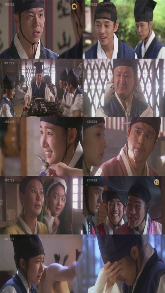 [스포츠투데이 박건욱 기자]KBS2 월화드라마 '성균관스캔들'에 출연 중인 주연들과 조연들이 환상적인 연기 앙상블을 선보이며 시청자들의 눈길을 사로잡았다. 7일 오후 방송한 '성균관스캔들'에서는 괴짜 스승 정약용(안내상 분)이 등장하는 장면과 그동안 티격태격하던 이선준(박유천 분)과 김윤희(박민영 분)이 극적으로 화해(?)하는 장면이 방송됐다. 선준과 윤희는 성균관에서의 첫 수업에서 정약용과 첫 대면에 나선다. 정약용은 수업도중 마술을 선보이는 등 그동안의 천편일률적인 가르침 방식에서 탈피, 유생들의 호기심을 자극한다. 평소 사이가 좋지 않던 선준과 윤희는 술자리에서 화해를 하며 훈훈함을 더한다. 윤희는 선준에게 "학업에 재미를 느낄 수 있었던 것은 모두 당신 덕분"이라며 감사의 마음을 표한다. 하지만 그 분위기도 잠시, 술에 취한 선준을 뒤치닥거리해야 하는 윤희의 고난아닌 고난이 시작된다. 결국 윤희와 선준은 통금시간에 늦을 위기에 처하지만 구용하(송중기 분)의 도움으로 그 위기를 모면한다. 특히 이날 방송에서는 박유천, 박민영 등 주연 배우들은 물론, 안내상, 김광규, 성현주 등 조연배우들의 능청스런 연기가 빛을 발했다. 박민영은 남장여자로서 겪어야 하는 해프닝을 자신만의 연기력으로 120%소화해냈다. 특히 선준의 알몸을 본 후 어쩔 줄 몰라 하는 윤희의 캐릭터를 코믹하게 그려내며 시청자들의 호평을 받았다. 박사 정약용 역을 맡은 안내상은 서학과 잡기에 탐닉하는 괴짜지만 날선 통찰력과 겸손한 자세를 겸비한 시대의 스승인 정약용 캐릭터를 완벽하게 연기해냈다. 뿐만 아니라 세책방의 주인 황가 역을 맡은 김광규와 효은의 시종 버들이 역을 맡은 성현주 역시 특유의 코믹스러운 표정연기로 시청자들에게 큰 웃음을 선사했다. 이같은 주연배우들과 조연배우들의 환상적인 연기 조화가 '성균관스캔들' 상승세의 바탕이 되고 있다는 평이다. 스포츠투데이 박건욱 기자 kun1112@<ⓒ아시아경제 & 재밌는 뉴스, 즐거운 하루 "스포츠투데이(stoo.com)">