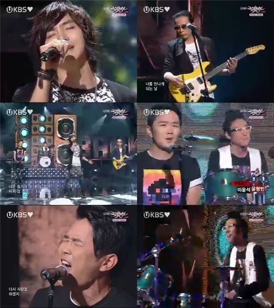 [스포츠투데이 박종규 기자]전설적인 밴드 부활이 특별한 무대로 관심을 집중시켰다.부활은 10일 방송한 KBS2 ‘뮤직뱅크’에 출연해 디지털 싱글 ‘사랑해서 사랑해서’를 공개했다. 특히 ‘남격밴드’로 사랑받고 있는 이윤석과 윤형빈이 함께하며 볼거리를 제공했다.12집 앨범 수록곡 ‘동화’를 먼저 부른 부활은 이어 ‘사랑해서 사랑해서’를 연주했다. 이 때 ‘남격밴드’의 이윤석은 드럼, 윤형빈은 건반 주자로 등장했다. 이윤석은 안정감 있는 비트로 곡을 이끌었고 윤형빈도 침착하게 하모니를 만들어갔다. 김태원도 기타를 연주하며 노련함을 과시했다.특히 윤형빈은 뛰어난 가창력을 뽐내기도 했다. '사랑해서 사랑해서'는 ‘남자의 자격’ 멤버들이 직장인 밴드 대회에 참가하기 위해 김태원이 10분 만에 만든 곡으로, 음원이 공개되자마자 실시간 차트 상위에 랭크되는 등 사랑을 받고 있다. 또 ‘남격밴드’는 이 곡으로 직장인 밴드대회에 참가해 동상의 영예를 안아 시청자들에게 큰 감동을 안겨주기도 했다.‘남자의 자격’ 녹화 도중 시범을 보였던 부활 버전의 ‘사랑해서 사랑해서’는 방송 이후 팬들의 뜨거운 반응을 이끌어냈으며, 부활의 연주와 노래로 듣고 싶다는 요청에 힘입어 디지털 싱글로 발매하게 됐다.이번 디지털 싱글은 남격밴드의 열정만으로는 표현할 수 없었던 곡의 느낌을 26년차 밴드의 관록 있는 연주와 사운드, 정동하의 탁월한 음색으로 표현되어 많은 관심이 집중되고 있다. 작곡자이자 부활의 리더인 김태원은 “복잡한 표현보다 간결한 멜로디라인과 쉬운 가사로 많은 이들의 사랑을 받고 있는 듯하다”며 곡에 대한 반응과 사랑에 소감을 표현했다.한편 이날 방송에는 SHINee(온유 종현 Key 민호 태민), 부활(김태원 채제민 정동하 서재혁, 특별출연 이윤석 윤형빈), 휘성, FT아일랜드(이홍기 이재진 최민환 최종훈 송승현), 시크릿(한선화 송지은 징거 전효성), Sistar(소유 보라 다솜 효린), 초신성(건일 윤학 성모 지혁 광수 성제), G.NA, 이루, KCM, 트랙스(제이 김정모), 달마시안(이나티 데이 데이 다리 지수 드라마 영원), 안진경, JQT(민정 가진 지은 민선), Gavy NJ(장희영 노시현 미스티), SORI, miss $(오유미 태혜영, Feat. 정슬기), 아리, 문지은 등이 출연했다.스포츠투데이 박종규 기자 glory@<ⓒ아시아경제 & 재밌는 뉴스, 즐거운 하루 "스포츠투데이(stoo.com)">
