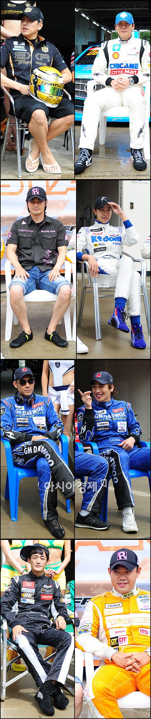[태백(강원) = 스포츠투데이 박성기 기자]12일 강원도 태백 레이싱파크에서 진행된 '2010 CJ 티빙닷컴 슈퍼레이스 챔피언십' 3라운드 경기에서 배우 류시원(팀106), 연정훈(시케인), 이세창(넥센 알스타즈), 이화선(KT돔), 김진표(GM대우), 유건(GM대우), 한민관(팀챔피언스), 이동훈(넥센 알스타즈)이 경기 전 포즈를 취하고 있다.스포츠투데이 박성기 기자 musictok@<ⓒ아시아경제 & 재밌는 뉴스, 즐거운 하루 "스포츠투데이(stoo.com)">