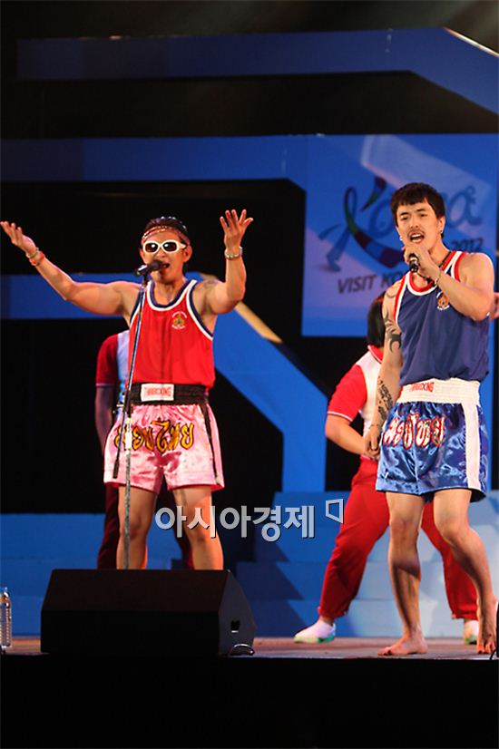 [방콕(태국)=스포츠투데이 최준용 기자]노라조가 지난 11일 오후 6시(현지시각) 태국 방콕 인도어 스타디움 후아마크에서 열린 '한국방문의 해 선포식 빅콘서트' 무대에 올라 멋진 무대를 펼쳤다.이날 행사는 한국관광공사와 (재)한국방문의해위원회가 주최하고 스포츠투데이·아시아경제신문과 참투어(Charm Tour), 아시아나항공이 주관한다. 문화체육관광부와 주태국대한민국대사관, 박준뷰티랩, 태평선식이 후원하며 (주)오리온, 마이크로소프트가 협찬했다.