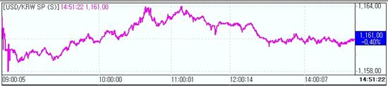 [아시아경제 정선영 기자]나흘째 하락하던 원·달러 환율이 1160원대에서 주춤하고 있다. 과도한 하락에 대한 레벨 경계감과 더불어 외환당국의 스무딩오퍼레이션, 결제수요 등이 하단을 떠받치면서 낙폭을 확대하지 못하는 양상이다. 오전중 석유공사의 다나페트롤리엄 인수 관련 10억불 환전이 이번주 내로 이뤄질 것으로 예상되면서 외환시장에서는 환율 하락에 부담으로 작용했다. 13일 오후 2시47분 현재 원·달러 환율은 전일대비 5.0원 내린 1160.7원에 거래되고 있다. 이날 환율은 1158.0원에 저점을 찍고 줄곧 횡보장세를 나타내고 있다. 1170원대부터 당국 환율 방어선이 조금씩 후퇴하고 있어 환율 하락속도는 늦춰지고 있는 상태지만 하락세는 여전히 지속되는 분위기다. 외국인은 코스피에서 4000억원 이상 순매수해 주식자금에 의한 압박도 작용하고 있다. 한 시중은행 외환딜러는 "환율이 더 내리지도 오르지도 못하는 수급 균형을 나타내고 있다"며 "결제와 역외 매도가 팽팽히 맞서고 있지만 저점 시도는 지속될 것으로 본다"고 말했다. 또 다른 외환딜러는 "네고물량이 지속적으로 나오고 주식시장도 괜찮아 하락 압력이 있다"며 "1170원대 스무딩오퍼레이션이 깨진 상태지만 석유공사의 다나 인수 관련 환전 소식으로 숏을 크게 내기도 어렵다"고 말했다. 그는 "방향은 아래쪽으로 생각하는데 눈치보기 장세가 나타나고 있다"고 말했다. 정선영 기자 sigumi@<ⓒ세계를 보는 창 경제를 보는 눈, 아시아경제(www.asiae.co.kr) 무단전재 배포금지>정선영 기자 sigumi@<ⓒ아시아 대표 석간 '아시아경제' (www.newsva.co.kr) 무단전재 배포금지>