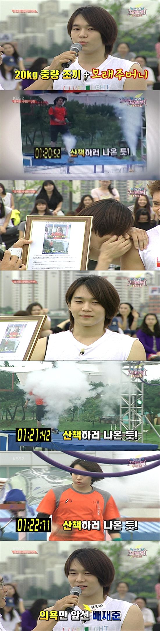 [스포츠투데이 최준용 기자]무성의한 방송태도로 물의를 빚었던 탤런트 배재준이 시청자들에게 사과의 메시지를 전달했다.19일 방송된 KBS2 '출발드림팀'에서는 배재준은 지난 5일 방송에서 무성의하게 게임을 펼쳤다는 많은 시청자들의 질책에 당시상황에 대해 해명하며 사과했다.이날 배재준은 본인이 나왔던 무성의 방송논란 인터넷 기사를 인쇄해 나와 눈길을 끌었다. 배재준은 “사실 방송시작 전부터 20kg 중량 조끼와 모래주머니를 몸에 차고 있었다.”며 “그 것 때문인지 기운이 다 빠졌었습니다. 의욕만 앞세워 무리수를 뒀던 것 진심으로 사과드립니다.”라고 말했다.앞서 배재준은 1차 투명 아크릴 관문에서 1분을 소요하며 통과했다. 그러나 이후 2차 관문을 향해 전속력을 내야 할 시점에 잔뜩 찡그린 표정을 한 채 마치 산책을 하듯 여유있게 느린 발걸음으로 걸어가는 모습을 보였다.결국 배재준은 워터철봉에서 손이 미끄러져 탈락했고 이에 많은 누리꾼으로부터 질책이 뜨거웠다.한편 이날 ‘출발드림팀’에서는 추석특집 제1회 물씨름 세계챔피언전이 열렸다. 이날 방송에는 탤런트 이상인, 심형탁, 정석원, 파스칼, 배재준 방송인 조영구, 가수 상추(마이티마우스), 진온(포커즈), 이현(에이트) 정모(트랙스), 김경록(V.O.S) 가람(대국남아) 등이 출연했다.스포츠투데이 최준용 기자 yjchoi01@<ⓒ아시아경제 & 재밌는 뉴스, 즐거운 하루 "스포츠투데이(stoo.com)">