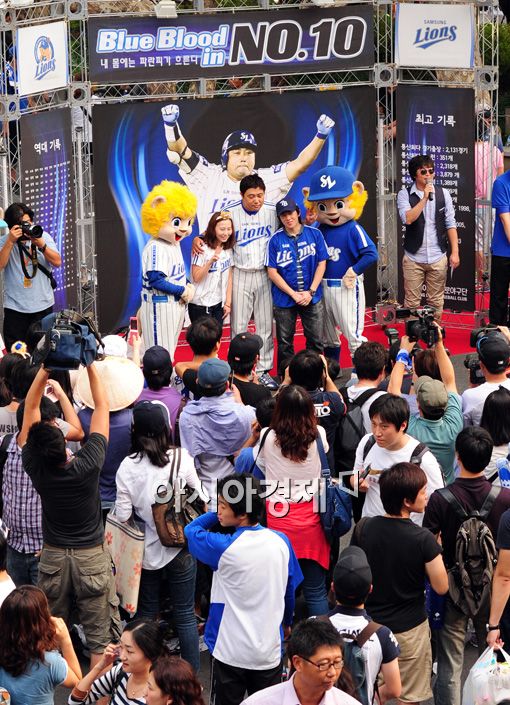 [대구=스포츠투데이 한윤종 기자]19일 오후 대구구장에서 열릴 '2010 CJ마구마구 프로야구' 삼성 라이온스와 SK 와이번스의 경기에 앞서 은퇴를 앞둔 양준혁이 팬들과 함께 기념촬영을 하고 있다.스포츠투데이 한윤종 기자 hyj0709@<ⓒ아시아경제 & 재밌는 뉴스, 즐거운 하루 "스포츠투데이(stoo.com)">