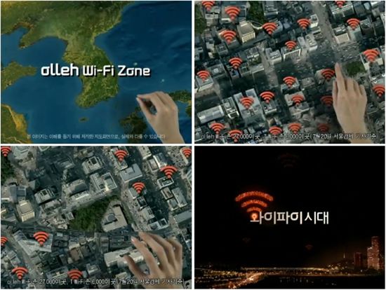 ‘콸콸콸’이라는 새로운 캠페인으로 데이터 통신 무제한이라는 장점을 KT 공격의 포인트로 삼은 것이다. ‘와이파이 존 따라다니지 마라’는 카피와 함께 무제한 데이터 통신을 강조하면서 경쟁의 틀을 바꿔놓으려는 전략이었다. 여기에 등장하는 와이파이 존은 KT의 와이파이존을 상징하는 마크로 KT를 정면으로 겨냥한 광고다.▲ SK텔레콤의 맞불을 되받아친 KT의 광고.