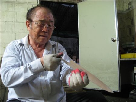 [아시아경제 최대열 기자]국내 유일의 단조분야 명장 주용부 용호공업사 대표는 "식칼을 만드는 데 가장 중요한 부분은 날을 어떻게 세우느냐"라고 주장한다. 식칼의 가장 기본적인 기능인 음식물을 썰고 베는 데 중점을 뒀기 때문이다.실제 주 명장이 만든 식칼은 시중에 나온 제품과 달리 칼날을 전체적으로 갈아 절삭력이 극대화된다. 일반적으로 기존 제품들의 경우 날 끝부분만 갈아서 나오는 경우가 많지만 그럴 경우 쉽게 무뎌질 수밖에 없다. 주 명장은 이같은 칼 제조법으로 인해 "영양분 파괴를 최소화할 뿐만 아니라 신선도가 더 오래 유지되기도 한다"고 했다.이처럼 날을 전체적으로 세우는 기술은 국내에서 주 명장만이 보유한 기술이다. 2005년 단조분야에서 처음 명장을 선정하게 된 것도 주 명장 때문이었고, 이후 이 분야는 아직 추가로 명장이 더 나오지 않고 있다.500명 가까운 명장 가운데 이처럼 분야마다 1명만 있는 경우는 무선통신, 철도신호 등 십여개에 불과하다. 단조란 금속을 적당한 온도로 가열해 연화됐을 때 해머 등을 이용해 원하는 크기나 모양을 만드는 작업으로 흔히 말하는 대장간에서 쇠를 달궈 연장을 만드는 걸 말한다.물론 칼날만 좋다고 해서 좋은 식칼이 되진 않는다. 날을 어떻게 세우는지는 물론 칼날의 소재, 적당한 무게감, 손에 잡히는 느낌 등 다양한 분야가 조화를 이뤄야 비로소 좋은 식칼이 된다. 세계적으로도 유명한 독일 헨켈사의 칼은 최고 수준의 소재를 사용해 강도가 오래 유지된다. 물론 그만큼 직접 날을 가는 일은 어렵다.국내에서 손꼽히는 식칼 제조업체 도루코의 윤명원 기술연구소 제품연구팀장 역시 다양한 점을 같이 고려해 칼을 선택해야 한다고 조언한다. 특히 들었을 때 무게감, 칼날과 손잡이를 잇는 부분을 잡았을 때 좌우 균형감, 그립감 등이 중요하다는 게 윤 팀장 설명.그는 "칼을 사용할 때 손목에 힘이 들어가면 원하는 대로 칼질이 되지 않는다"며 "쥐었을 때도 안정감을 줘야 오래 써도 쉽게 피곤해지지 않는다"고 말했다.먹는 걸 다루다보니 위생이나 편리성, 손잡이 재질까지도 중요하다. 특히 최근 출시되는 제품들은 칼날과 손잡이를 연결해주는 부분을 이음새 없이 제작돼 이물질이 끼지 않는다. 세균번식 염려가 없고 칼질이 용이해져 손목에 무리도 덜 간다.도루코에서 최근 출시한 레몬그라스 제품의 경우 하이카본 스테인레스 스틸 소재를 쓴다. 기존 무쇠칼과 스테인리스 스틸칼의 단점을 보완한 재질.윤 팀장은 "스테인리스 스틸과 고탄소강을 적절히 배합해 만들었기 때문에 철의 분자 배열이 차져 단단하고 날이 잘 서며 쉽게 무뎌지지 않는다"고 설명했다.최대열 기자 dychoi@도움말 : 주용부 용호공업사 대표(단조 명장), 윤명원 도루코 기술연구소 제품연구팀장<ⓒ세계를 보는 창 경제를 보는 눈, 아시아경제(www.asiae.co.kr) 무단전재 배포금지>