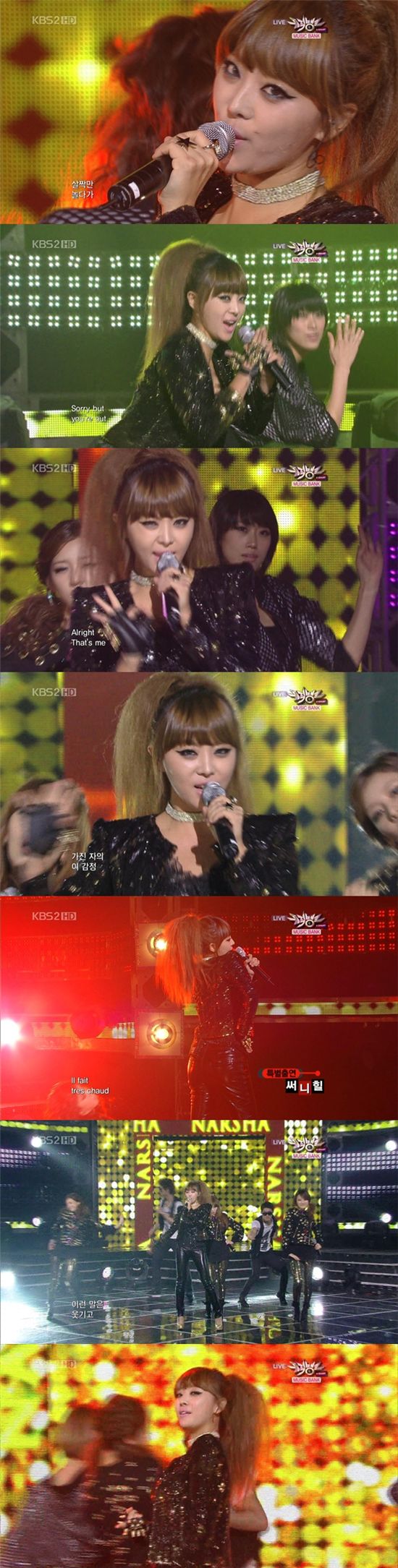 [스포츠투데이 최준용 기자]나르샤가 환상적인 무대와 함께 트랜드세터(trendsetter)다운 화려한 의상으로 눈길을 끌었다.나르샤는 24일 오후 5시 50부터 생방송으로 진행된 KBS '뮤직뱅크'에 출연해 디지털싱글 음반 타이틀곡 ‘맘마미아’를 공개했다.이날 무대에서 나르샤는 펑키한 긴 헤어스타일과 가죽 팬츠와 킬힐으로 시선을 사로잡았다. 또 나르샤만이 소화해낼 수 있는 트랜디한 메이크업으로 매력을 더했다. 또한 후배그룹 써니힐과 합동 무대로 곡 색깔을 더욱더 풍부하게 표현했다.또 나르샤는 한층 밝은 표정과 화려한 안무로 완벽에 가까운 무대를 펼치며 많은 팬들로부터 환호를 받았다.타이틀곡 맘마미아는 강한 드럼비트와 화려한 신디사이저 음색이 돋보이는 곡이며, 세련된 사운드가 나르샤 목소리와 함께 어우러져 한층 완성도가 높아진 곡이다. 특히, 랩을 하듯 이어지는 빠른 멜로디를 완벽하게 소화해내 또 다른 매력을 발산했다. 한편 이날 무대에는 miss $, 써니사이드(Feat.Gavy NJ 시현), 나비, 차민기, 지아, SORI(Feat.NACO), 안진경(Feat.H-유진), Gavy NJ, 오종혁, 일렉트로보이즈(Feat.간미연), 씨스타(Sistar), 채동하, 트랙스, 나르샤(Feat.써니힐), 이루, 환희, V.O.S, 시크릿, 손담비, 에프티 아일랜드, 2NE1, 보아(BOA) 등이 출연해 멋진 무대를 꾸몄다. 스포츠투데이 최준용 기자 yjchoi01@<ⓒ아시아경제 & 재밌는 뉴스, 즐거운 하루 "스포츠투데이(stoo.com)">