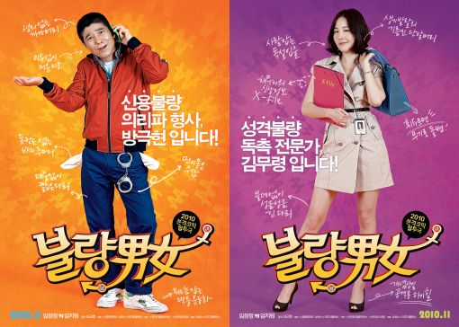 [스포츠투데이 이기범 기자]영화 '불량남녀' 임창정과 엄지원의 캐릭터 포스터가 전격 공개됐다.27일 공개된 캐릭터 포스터는 임창정과 엄지원은 '신용불량 의리파 형사, 방극현 입니다!'와 '성격불량 독촉 전문가, 김무령 입니다!'라는 카피로 두 주인공의 특징을 자세하게 드러낸다. 강력계 형사라는 직업과 어울리는 짧은 머리와 활동성이 강조된 추리닝을 입은 임창정은 '성의 없는 까까머리' '대중없이 짧은 다리' 등의 문구로 캐릭터의 코믹함을 더하고 있다.최고의 독촉 전문가다운 차림새의 엄지원도 '사람 잡는 독설 입술', '휘두르면 무기로 돌변!', '개념상실 공격용 하이힐' 등의 문구로 당당하면서도 논리정연하지만, 욱하는 마음에 감정적으로 대응하는 캐릭를 표현하고 있다.'불량남녀'는 친구의 빚보증을 섰다가 거액의 빚을 떠안게 된 신용불량 강력계 형사와 독촉 전문 카드사 상담원이 벌이는 코믹물로 오는 11월 4일 개봉 예정이다.스포츠투데이 이기범 기자 metro83@<ⓒ아시아경제 & 재밌는 뉴스, 즐거운 하루 "스포츠투데이(stoo.com)">