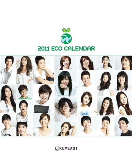 Top Korean talenthouse KEYEAST will release an eco-friendly calendar featuring their stars, according to the agency on Tuesday.KEYEAST announced in a press release that the calendar for the year 2011, including photographs and messages regarding the environment from KEYEAST stars such as Bae Yong-joon, Lee Na-young, E Ji-ah, Kim Hyun-joon and Choi Kang-hee, will go on sale in early October.The calendar, part of the agency's push to help save the environment, will be produced with 100-percent recycled paper and printed in soybean oil. It will also feature the history of World Environment day and proceeds will be donated to the Global Education Program for the United Nations Environment Programme (UNEP) National Committee for the Republic of Korea. "All of the talents of KEYEAST have graciously agreed to take part in this project. We hope that many fans show their support for the environment through this eco-friendly calendar," Yang Geun-hwan, the CEO of KEYEAST was quoted as saying. An official from UNEP said, "It is great to see how these top stars of Korea have taken part in this project to help the earth. Hopefully, people will learn more about the environment and the earth." The 2011 eco-calendar will go on sale simultaneously in Korea and Japan on October 5 while a smart phone application, to be produced in Korean and English, will be available in mid-October.Founded in 2004, KEYEAST focuses on various aspects of the entertainment industry such as managing celebrities, licensing, planning and producing visual contents and investments.Layout of the 2011 eco calendar [KEYEAST]