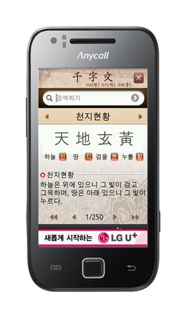 안드로이드폰 갤럭시U에서 구현된 유플러스AD. 애플리케이션 실행 화면 아래에 광고가 삽입된다.