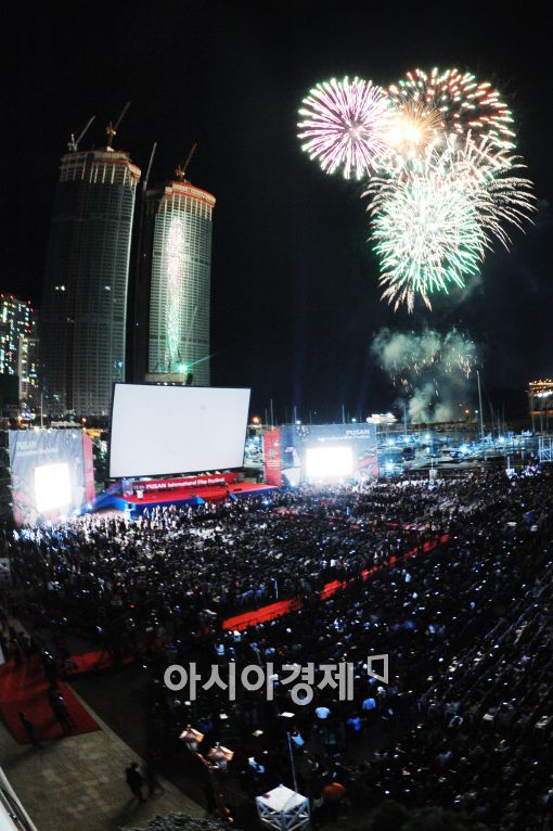 7일 오후 부산 해운대구 수영만 요트경기장에서 '제15회 부산국제영화제' 개막을 알리는 축포가 터지고 있다./부산=이기범 기자 metro83@