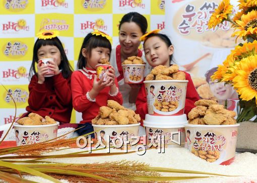 [아시아경제 이재문 기자]BHC치킨이 13일 서울 청계광장에서 신제품 우리쌀 순살치킨(우쌀순)을 선보이고 있다. '우쌀순'은 뼈 없는 순살에 우리쌀을 입혀 고소하고 쫄깃하며 담백한 맛이 일품으로 바삭한 식감에 미려한 외관과 색상까지 더해진 高풍미, 高영양의 신개념 제품이다.이재문 기자 moon@<ⓒ세계를 보는 창 경제를 보는 눈, 아시아경제(www.asiae.co.kr) 무단전재 배포금지>