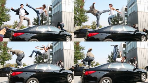 [스포츠투데이 이기범 기자]KBS2 수목드라마 '도망자 Plan.B'에서 지우 역으로 열연하고 있는 가수 겸 배우 비의 리얼한 액션이 담긴 스틸컷이 공개됐다.21일 공개된 스틸컷에는 가슴을 발로 차인 채 자동차 지붕위로 떨어지는 액션을 대역 없이 선보이는 비의 모습이 담겨있다.현장 관계자에 따르면 비는 십여 차례 발로 차이고 구르며 고생이 많았지만 아픈 내색 없이 몸을 날리는 프로다운 모습을 보여 현장스태프들의 박수를 받기도 했다.또 고난도 액션을 펼치던 비가 자동차 위에서 360도 회전하며 떨어지는 아찔한 상황도 맞았지만 특별한 부상이 없어 곧바로 촬영을 재개할 수 있었다. 지켜보던 100여명의 일본 여성팬들은 '아~' 하는 탄성과 함께 안타까움을 금치 못했다는 후문.한편 KBS2 '도망자 Plan.B'는 명쾌한 탐정 지우와 국가 비밀기관에서 일하는 진이(이나영 분)가 펼치는 다이나믹한 추격 액션 활극을 그린 드라마다.스포츠투데이 이기범 기자 metro83@<ⓒ아시아경제 & 재밌는 뉴스, 즐거운 하루 "스포츠투데이(stoo.com)">