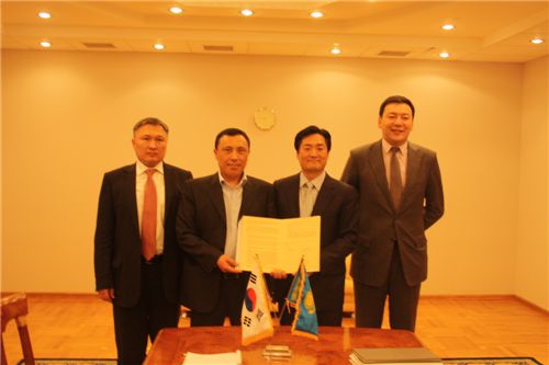 아브구치노브 자만그룹측 대표(왼쪽에서 두번째), 김지용 포스코 소재사업담당 상무(왼쪽에서 세번째)