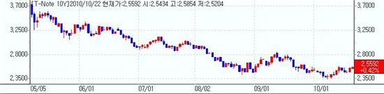 22일(현지시간) 오후 4시53분 현재 뉴욕채권시장에서 10년만기 국채금리가 전장대비 1bp 상승한 2.56%를 기록했다. 개장초에는 2bp이상 하락하기도 했지만 상승반전하면서 2.58%까지 올라 이번주 최고치를 보였다. 주간단위로는 보합세로 마감했다. 반면 30년만기 국채금리는 어제보다 3bp 떨어진 3.93%를 나타냈다. 개장초에는 3.99%까지 오르기도 했다. 이번주중에는 5bp가 떨어졌다.30년물과 TIPS간 스프레드는 254bp로 벌어졌다. 지난 1일에는 212bp를 기록했었다. 최근 5년간 평균치는 240bp다.시장 참여자들은 Fed가 다음달 2일과 3일로 예정된 FOMC회의에서 어떤 결정을 내릴지 의견이 분분한 상황이다. Amitabh Arora 씨티그룹 수석리서처는 매달 1000억달러규모씩 총 5000억달러에서 7000억달러의 추가양적완화를 기대한다고 밝혔다. Dominic Konstam 도이치뱅크 글로벌 채권리서치 대표는 “Fed가 확실한 시도를 보일 것이다. 대차대조표상 상당할 것이다. 유동성부족을 메우길 원한다면 적어도 1조달러가 될 것”이라고 전했다. Kevin Flanagan 모간스탠리스미스바니 채권스트레지스트는 “우리는 현재 (Fed의 결정을) 기다리며 지켜보고 있는 상황”이라며 “시장은 다양한 시각에서 접근하고 있다”고 말했다.앨런 블라인더(Alan Blinder) 전 Fed 부총재는 블룸버그와의 인터뷰에서 “중앙은행이 갈길은 하나밖에 없다”며 “국채매입을 위한 추가양적에서 5000억달러규모는 너무 적다”고 말했다. 찰스 플로서(Charles Plosser) 필라델피아 Fed 총재는 “디플레가 당면한 직접적 문제는 아니라고 본다”면서도 “내년 인플레가 2%는 돼야할것으로 본다”고 말했다. 제임스 블러드 세인트 루이스 Fed 총재는 전일 미국 경제회복을 위해서 다음달부터 1000억달러씩 국채매입을 시작해야한다고 밝혔었다. 벤 버냉키 Fed 의장은 지난 15일 추가 행동이 필요하다고 밝혀 양적완화를 시사한바 있다.뉴욕 Fed는 이날 2013년 4월부터 2013년 6월만기물 24억9000만달러어치의 국채재매입을 실시했다. 미 중앙은행은 지난 8월17일부터 총 582억달러어치의 국채를 매입했다.미 재무부는 어제 990억달러 규모의 국채입찰을 다음주 26일부터 실시한다고 발표했다. 종목별로는 2년물과 5년물이 각각 350억달러, 7년물이 290억달러다. 이와는 별도로 25일 100억달러어치의 5년 TIPS입찰도 실시한다.티모시 가이트너 미 재무부장관은 한국 경주에서 열린 G20 재무장관회의에서 통화전쟁을 풀기 위해 무역흑자국은 그 규모를 줄이고, 적자국은 저축을 늘릴 필요가 있다고 제안했다. 인터컨티넨탈익스체인지사가 발표하는 달러지수에 따르면 미 달러화가 지난달 21일이래 6개국 주요통화대비 3.8%가 떨어졌다.김남현 기자 nhkim@<ⓒ세계를 보는 창 경제를 보는 눈, 아시아경제(www.asiae.co.kr) 무단전재 배포금지>