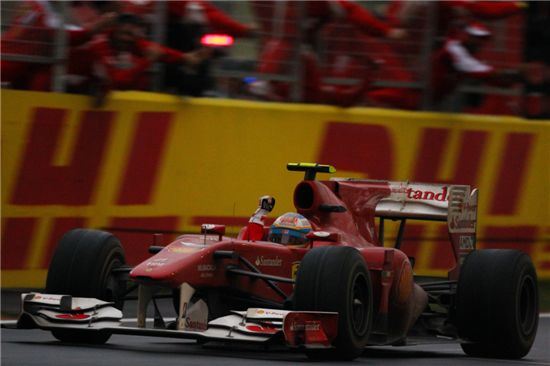 [아시아경제 지선호 기자]24일 오후 4시 전라남도 영암군 코리아 인터내셔널 서킷에서 진행된 '2010 포뮬러원(F1) 코리아 그랑프리' 결선에서 1위를 차지한 페르난도 알론소가 팀 동료들의 환호를 받으며 결승선을 통과한 후 손을 치켜들고 기뻐하고 있다.지선호 기자 likemore@<ⓒ세계를 보는 창 경제를 보는 눈, 아시아경제(www.asiae.co.kr) 무단전재 배포금지>