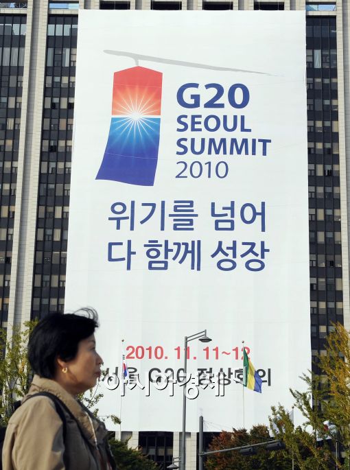 [아시아경제 이재문 기자]25일 오전 서울 세종로 정부중앙청사에 G20 정상회의 대형 플래카드가 걸려 시민들의 눈길을 끌고 있다.이재문 기자 moon@<ⓒ세계를 보는 창 경제를 보는 눈, 아시아경제(www.asiae.co.kr) 무단전재 배포금지>