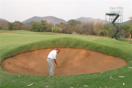남아공 요하네스버그에서 북서쪽으로 187km, 자동차로 2시간 30분 거리에 선시티(Sun city)가 있다.사막 한가운데에 개발된 바로 골프의 메카다. 이 안에서 '잃어버린 세계'라는 흥미로운 테마와 웅장한 아프리카의 정취가 느껴지는 로스트시티(Lost city)를 만날 수 있다. 남아공의 500여개 골프장 중 제일 명코스로 꼽히는 게리플레이어골프장(Gary Player County Club)이 있는 곳이다. 이 골프장은 특히 네드뱅크(Ned bank)가 후원하는 밀리언달러골프챌린지(Million Dollar Challenge Tournament)의 개최지로 유명하다. 리조트형 골프장이지만 난이도가 매우 높다. 2008년 최경주가 7위를 기록한 적이 있다. 필란스버그 산맥이 병풍처럼 둘러싸고 있어 아프리카의 수려한 경관이 돋보이지만 골퍼들을 울리는 까다로운 코스다. 스코어를 내려고 욕심을 부릴수록 스코어는 더 나빠진다. 골프장은 고급 리조트 내 피라미드형태의 모양을 한 케스케이드 호텔 앞에 넓게 자리 잡고 있다. 1979년 남아공 출신의 세계적인 골퍼 게리 플레이와 론 거비가 메마른 아프리카의 사바나 한가운데에 파72, 전장 7162m 규모의 코스를 조성했다. 연못이 있고, 실개천이 흐르며, 습지가 있고, 붉은색 벙커가 곳곳에 입을 벌리고 있다. 어디로 드라이브 샷을 날려야 할지, 어떻게 공략해야 할지 골퍼들의 마음을 불안하기 짝이 없을 정도로 뒤흔들어 놓는다. 그나마 호수를 유유히 헤엄쳐 다니는 물오리떼가 가끔씩 마음을 평온하게 해준다. 조금이라도 샷이 흐트러지면 깊은 러프나 나무 밑 또는 숲속이나 돌멩이 밭으로 들어가 버리는 징벌이 주어진다.빈대떡으로 비유될 만큼 작은 그린에서는 무려 5퍼팅 만에 홀아웃하기도 했다. 스피드가 빠르고, 착시현상까지 더해져 라인을 읽기도 어렵다. 키가 크고 체격이 우람한 남자 흑인 캐디의 조언을 받으며 라운드를 해보지만 라운드 내내 속을 끓여야만 했다. 9번홀(파5)이 압권이다. 티 샷은 해저드를 넘겨야 하고 페어웨이는 좁다. 아일랜드 그린 앞 역시 연못이 도사리고 있다. 매 샷 마다 손이 떨린다.글ㆍ사진=김맹녕 골프칼럼니스트<ⓒ세계를 보는 창 경제를 보는 눈, 아시아경제(www.asiae.co.kr) 무단전재 배포금지>