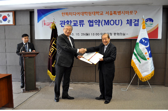 [스포츠투데이 황용희 기자]마포구(구청장 박홍섭)와 한독미디어대학원대학교(총장 신길수)는 지역주민의 취업알선과 복리증진을 위해 상호 협력하기로 하고 지난 25일 협약(MOU)을 체결했다.마포구 상암동 DMC(디지털미디어시티)에 위치한 한독미디어대학원대학교(KGIT)는 "뉴미디어 전문 고등교육기관으로서 학교가 보유하고 있는 장비와 시설 및 전문기술을 지역주민에게 제공하겠다"고 계획을 밝혔다.이에 마포구는 교육대상자의 모집과 교육에 필요한 예산지원을 통해 디지털미디어 분야에 관심이 있는 구민에게 취업기회를 제공하고, 구정 전반에 디지털미디어 개념을 도입하여 수준 높은 행정을 펼쳐 나간다는 방침이다.금번 협약을 계기로 마포구와 KGIT 양 기관은 ▲디지털 미디어 분야 구민 직업교육 및 취업알선 ▲어린이 공원 현대화 (공원 내 디지털미디어 기술도입) ▲청소년 시네마 캠프 운영 ▲마포구민 평생교육 프로그램 운영지원 ▲공무원 능력개발 교육 (디지털미디어 분야) ▲‘마포 인터넷 방송국(MBS) 운영지원'▲마포지역 관광 활성화 등 8가지를 주요 사업으로 협력 추진한다.앞으로 마포구와 KGIT는 정보화 시대에 걸맞는 상생의 발전과 지역주민의 삶의 질 향상을 위해 디지털미디어 분야에서 다양한 사업을 발굴하고 추진하여 생산적 관학협력의 선도모델을 만들어 나간다는 계획이다.스포츠투데이 황용희 기자 hee21@<ⓒ아시아경제 & 재밌는 뉴스, 즐거운 하루 "스포츠투데이(stoo.com)">