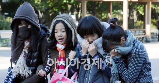 [아시아경제 이재문 기자]서울 등 전국에 한파주의보가 내려진 26일 오전 서울 이촌동 신용산 초등학교에서 학생들이 찬바람에 두꺼운 옷을 여민 채 등굣길을 서두르고 있다.이재문 기자 moon@<ⓒ세계를 보는 창 경제를 보는 눈, 아시아경제(www.asiae.co.kr) 무단전재 배포금지>