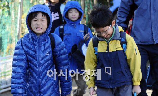 [아시아경제 이재문 기자]서울 등 전국에 한파주의보가 내려진 26일 오전 서울 이촌동 신용산 초등학교에서 학생들이 찬바람에 두꺼운 옷을 여민 채 등굣길을 서두르고 있다.이재문 기자 moon@<ⓒ세계를 보는 창 경제를 보는 눈, 아시아경제(www.asiae.co.kr) 무단전재 배포금지>
