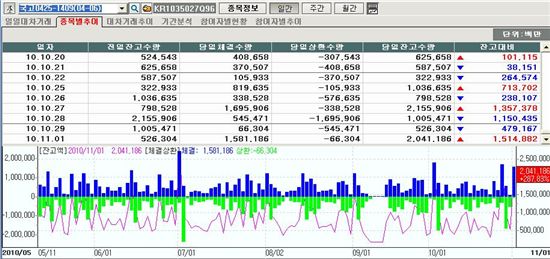 [아시아경제 김남현 기자] 국고10년 4-6 대차잔고가 들쑥날쑥하다. 국채선물 바스켓물도 아닌데다 거래가 활발한 종목도 아니라는 점에서 다소 의외다. 하지만 지속적으로 늘었다 줄었다하는 모습이어서 뭔가가 있을 것이라는 의구심이 커지고 있는 모습이다. 대차매도 등 시장거래용보다는 자금성과 연계됐을 것이라는 추정이다.다만 외국인들이 국고3년물 입찰을 위해 RP차입 관련 담보용으로 제공됐을 가능성이 있다는 주장이다. 이는 이달과 지난달 국고3년물 입찰과 맞물려 대차잔량이 늘었다는 점에서 분석에 힘이 실린다.2일 채권시장에 따르면 국고10년 경과물 4-6 대차잔고가 전일 1조5148억8200만원이 늘어 2조411억8600만원을 기록했다. 이는 지난달 4일 1조5912억4000만원이 증가한후 일일 증가폭으로는 최대치다. 지난달 27일에는 1조3573억7800만원이 증가한 2조1559억600만원을 기록해 지난 7월1일 2조7192억700만원이후 4개월여만에 최고치를 경신했었다. 반면 전일 4-6 거래는 없었다.한 자산운용사의 채권운용본부장은 “4-6의 대차잔고 증감이 계속돼왔다. 아마 외은들이 RP차입관련해 담보로 제공하는 것으로 보여 기표됐다 상환됐다하기 때문”이라며 “전일 국고3년 10-2 입찰과 맞물려 하루자금이 필요했기 때문으로 보인다”고 전했다.증권사의 한 채권딜러는 “전일 매매가 전혀 없었기 때문에 누군가 4-6을 대차해 다른 포지션을 취한듯하다”고 말했다.외국계은행과 또다른 복수의 증권사 채권딜러들도 “4-6이 시장거래가 된게 아니라 대차매도 등과 관계가 없다. 자금성과 연계돼 있다고 들었다”고 밝혔다.김남현 기자 nhkim@<ⓒ세계를 보는 창 경제를 보는 눈, 아시아경제(www.asiae.co.kr) 무단전재 배포금지>김남현 기자 nhkim@<ⓒ아시아 대표 석간 '아시아경제' (www.newsva.co.kr) 무단전재 배포금지>