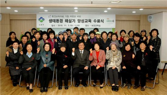 [아시아경제 박종일 기자]김성환 노원구청장은 3일 오전 11시 노원구보건소 보건교육실에서 열린 ‘생태환경 해설가 양성교육 수료식’에 참석했다. 김 구청장은 수료생들을 축하하고 심각한 지구 온난화를 알리고 우리 자연의 소중함을 알리는 환경지킴이 역할을 다 해줄 것을 당부했다. 강미옥씨 등 수료생 42명은 앞으로 설립될 환경교육센터 등에서 생태교육 자원봉사자로 활동할 예정이다.박종일 기자 dream@<ⓒ세계를 보는 창 경제를 보는 눈, 아시아경제(www.asiae.co.kr) 무단전재 배포금지>