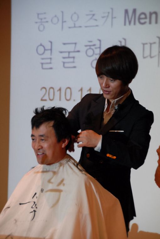 이미지메이킹 강연에 사전 신청한 동아오츠카 직원이 이순철 원장으로부터 새로운 머리모양 연출을 받고 있다.