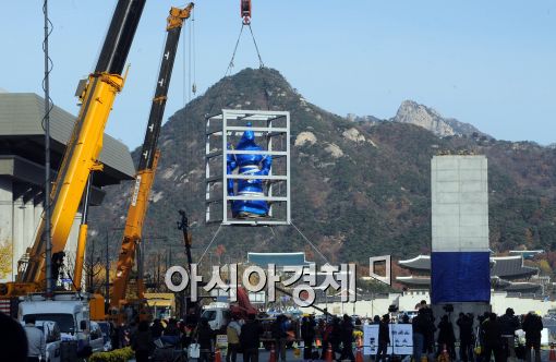 [아시아경제 이재문 기자]42년 동안 서울 광화문 앞을 지켰던 이순신 동상이 14일 오전 보수작업을 위해 동상 기단에서 분리되고 있다. 이순신 동상은 경기도 이천에 있는 작업장으로 이동하여 보수를 마친 뒤 다음 달 22일 새로운 보습으로 돌아올 예정이다.이재문 기자 moon@<ⓒ세계를 보는 창 경제를 보는 눈, 아시아경제(www.asiae.co.kr) 무단전재 배포금지>