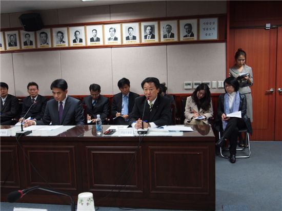 이제학 양천구청장이 지난 11일 종로구청 기획상황실에서 열린 무상급식 예산 편성을 촉구하는 구청장 간담회에서 발언을 하고 있다.