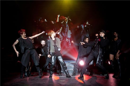 JYJ performs during the showcase for their first global album "The Beginning" held at the Hammerstein Ballroom in New York, U.S.A on November 12, 2010. [Prain Inc.]