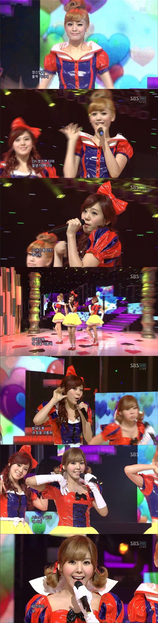 [스포츠투데이 최준용 기자]중독성 있는 콘셉트로 올 여름 최고의 주목을 받았던 ‘마법소녀’의 주인공 오렌지캬라멜이 동화 속 인물로 변신했다.오렌지캬라멜은 21일 오후 생방송으로 진행된 SBS ‘인기가요’에 출연해 두 번째 미니음반 타이틀곡 ‘아잉’을 공개했다.이날 무대에서 오렌지캬라멜 멤버들은 동화 속에서 방금 튀어 나온 듯한 의상으로 깜찍하고 상큼한 매력을 과시했다. 특히 중독성 짙은 멜로디와 멤버들 특유의 톡톡튀는 퍼포먼스는 히트를 예감케 했다.타이틀곡 ‘아잉’은 ‘마법소녀’를 함께 작업한 조영수, 휘성 콤비의 곡으로 연속으로 오렌지캬라멜의 히트 넘버에 도전할만한, 최신 트렌드의 화려함을 놓치지 않으면서도 한국적인 멜로디 전개와 편곡으로 듣는 이들로 하여금 숨 쉴 틈 없는 즐거움을 주는 곡이다. 한편 오렌지캬라멜의 두번째 미니앨범은 타이틀곡 ‘아잉’을 비롯해 총 4곡의 신곡과 보너스트랙까지 5곡이 수록돼 있다. 스포츠투데이 최준용 기자 yjchoi01@<ⓒ아시아경제 & 재밌는 뉴스, 즐거운 하루 "스포츠투데이(stoo.com)">