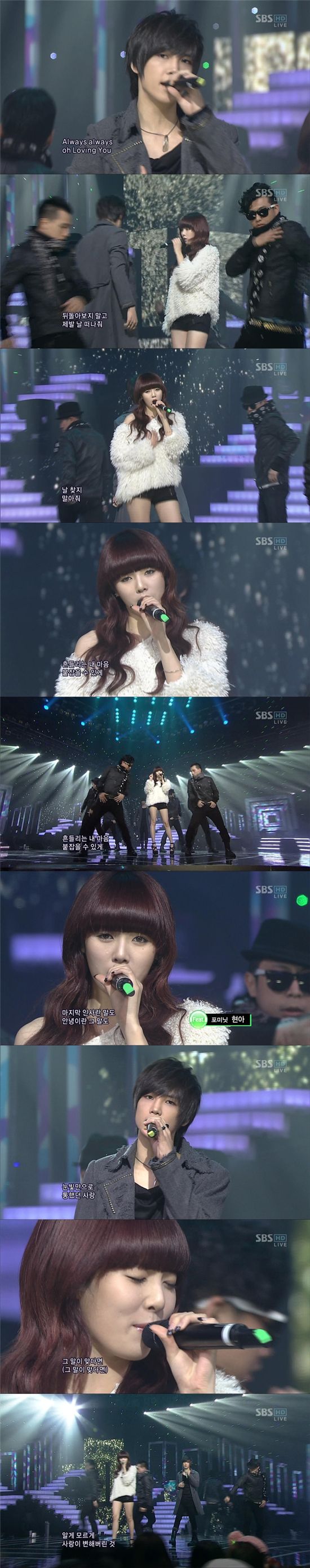 [스포츠투데이 최준용 기자]]오원빈을 지원사격한 현아가 연이틀 가사를 잊어버린 실수로 눈길을 사로잡았다.오원빈은 21일 오후 생방송으로 진행된 SBS ‘인기가요’에 출연해 디지털싱글 타이틀곡 '사랑해 또 사랑해'의 무대를 선보였다.이날 무대에서 오원빈은 한층 성숙된 매력적인 보이스로 눈길을 사로잡았다. 또 포미닛의 현아와 함께 무대를 꾸몄다. 이날 현아는 순간 가사를 잊어버렸는지 얼버무리며 눈길을 끌었다.앞서 현아는 지난 20일 MBC '쇼!음악중심' 무대에서 생방송 도중 가사를 잊어버리는 실수를 했지만 특유의 깜찍한 미소를 위기를 모면했다.타이틀곡 '사랑해 또 사랑해'는 화려한 오케스트라와 반복적인 코드 안에서 다양한 멜로디 테마가 어우러진 미디움템포의 곡이며 브라운 아이드걸스의 미료가 지원사격으로 도와주어 더욱 멋진 곡이다.한편 오원빈은 자신이 하고 싶은 음악이 무엇인지를 알아가고, 더 넒은 음악세계를 배우고자 FT아일랜드를 탈퇴한 뒤 학업에 매진 해왔다.스포츠투데이 최준용 기자 yjchoi01@<ⓒ아시아경제 & 재밌는 뉴스, 즐거운 하루 "스포츠투데이(stoo.com)">