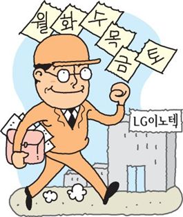 [아시아경제 박성호 기자]올 4ㆍ4분기 실적부진 우려가 커지고 있는 LG이노텍 임원들이 2개월여전부터 전원 주말근무에 나서고 있다. 이는 허영호 LG이노텍 사장의 지시에 따른 것으로 최근 LED경기 부진에 따른 실적타계책 모색과 더불어 최근 준공한 파주공장 정상가동 및 생산 정착화 노력의 일환으로 분석된다.23일 관련업계에 따르면 LG이노텍 임원들은 최근 파주공장과 서울 본사를 오가며 주말근무를 하고 있으며 파주공장과 자택과의 거리가 멀어 출퇴근이 힘든 일부 임원들은 파주공장 사택에서 머물고 있다.