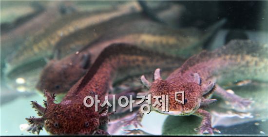 [아시아경제 김봉수 기자] 인천 소재 '부평숲 인천나비공원'은 멸종 위기종인 멕시코도롱뇽 '우파루파'가 나비공원 내 생물전시실에서 전시되고 있다고 23일 밝혔다.우파루파는 멕시코시티 소치밀코 호수에만 서식하는 희귀 도롱뇽으로 일반 도롱뇽과 달리 아가미가 몸속으로 들어가지 않아 뿔처럼 보이며, 언제나 얼굴이 웃는 형상을 하고 있어 관상효과가 뛰어나 관람객들의 눈길을 사로잡는다.성체가 되도 변태를 하지 않기 때문에 긴 꼬리와 네 개의 다리, 머리 양옆의 아가미를 평생 달고 사는 독특한 양서류로 물 온도가 25도 가까이 올라가면 호흡능력이 크게 떨어지고 17도 내외의 물에서만 알을 낳는 등 매우 예민한 동물이다. 나비공원은 이를 위해 온도시설을 별로로 설치하는 등 사육준비에도 만전을 기하고 있다. 우파루파는 무분별하게 남획돼 현재는 자연 상태에 1천 마리 정도만이 서식하고 있는 것으로 알려져 있으며, 국제적멸종위기종(CITES) 및 세계자연보호연맹(IUCN)에서 심각한 멸종위기종으로 지정해 보호하고 있다. 국내에 반입이 금지된 동물인 우파루파는 2007년 한 애완동물판매상이 불법으로 들여온 것을 정부가 압수해 서울대공원에서 ‘위탁 사육’ 하던 것이 최근 번식에 성공해 이중 일부를 나비공원에서 분양받아 전시하게 된 것으로 현재 새끼 어미까지 다 합치면 약 20여 마리가 나비공원에 살고 있다. 홍미영 부평구청장은 “우리 구민들이 나비공원에서 언제나 웃고 있는 우파루파를 보면서 작은 행복을 느껴볼 수 있는 좋은 기회”라며 “우파루파를 본 우리 아이들이 재미있는 생물의 세계를 이해하고 즐거운 자연관찰 학습 수행능력을 키울 수 있는 중요한 시간이 되길 바란다”고 말했다.한편 부평숲 나비공원은 부평구 청천동 68-12번지 장수산 자락에 나비생태관, 자연교육센터 등을 갖추고 지난해 10월 개장했다. 매주 월요일과 1월1일, 설날, 추석 당일에 휴관한다. 입장료는 무료다. (문의 032-509-8820)김봉수 기자 bskim@<ⓒ세계를 보는 창 경제를 보는 눈, 아시아경제(www.asiae.co.kr) 무단전재 배포금지>