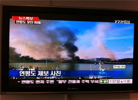 트위터 이용자들이 올린 연평도 폭탄 피해 현장 뉴스 캡처 사진