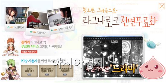 [스포츠투데이 강경록 기자]글로벌 온라인게임 기업 그라비티(대표 오노 도시로, 강윤석)의 '라그나로크 온라인'이 24일 전면 무료화 서비스로 전환했다.그라비티의 관계자에 따르면 "'라그나로크 온라인'은 요금 부담 해소 및 서비스 품질을 강화해 보다 많은 유저들이 게임을 즐길 수 있도록 모든 서버를 전면 무료화한다"고 밝혔다.또한 고양이들의 섬 '말랑도'와 '별빛산호지대' 던전, '지하배수로' 메모리얼 던전, 이동 수단 등을 새롭게 업데이트 해 유저선택에 따라 다양한 즐거움을 제공한다.최희준 라그나로크 스튜디오장은 "라그나로크가 오늘 전면 무료화로 전환하고 여러 이벤트를 진행해 유저들에게 다양한 혜택을 제공하려 한다"며 "전면 무료화에 대한 유저들의 의견을 지속적으로 수렴해 향후 운영 정책 및 방향 등을 보완, 개선해 나갈 예정이니 많은 유저들이 새로운 서버 환경에서 게임을 즐기고 의견을 줬으면 좋겠다"고 말했다.스포츠투데이 강경록 기자 rock@<ⓒ아시아경제 & 재밌는 뉴스, 즐거운 하루 "스포츠투데이(stoo.com)">강경록 기자 rock@<ⓒ아시아 대표 석간 '아시아경제' (www.newsva.co.kr) 무단전재 배포금지>